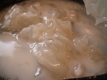3.全体が透明でかたまりになったら、氷水に入れて冷やす