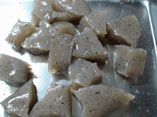 ※こんにゃくは、塩をもみこむことで臭みがとれる