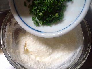 パセリをみじん切りし、サワークリームと混ぜ合わせます。