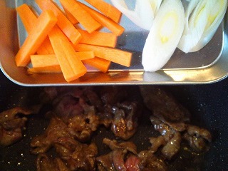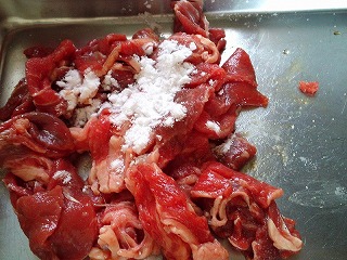 1.牛肉は適当な大きさに切り(A)で下味をつけます。