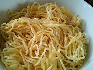 3.焼きそば用中華蒸し麺はほぐして、しょう油、ごま油を絡めます。