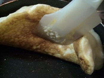 6.4フライパンにバターを溶かして、5を流し入れ広げて中火で加熱し、底面に焼き色をつけます。