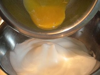 5.4のボウルに3の卵黄を加えて混ぜ合わせます。