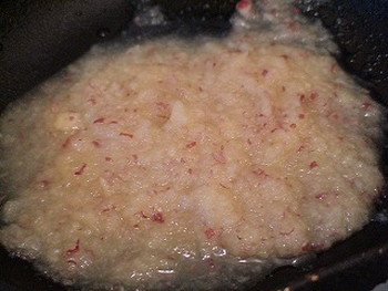 7.6を小鍋に移して、少し煮詰め、しょう油、酒で味付けする
