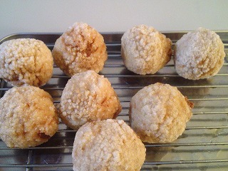 3.1の肉団子を170℃の油で5分ほど揚げ、火が通ったところで取り出します。