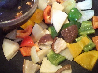 (私は、黄色ピーマン、しいたけ、たけのこを追加しました)
