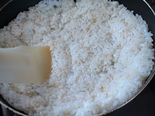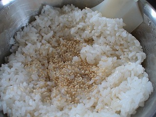 2.ご飯に白ゴマとゴマ油を混ぜ、熱
