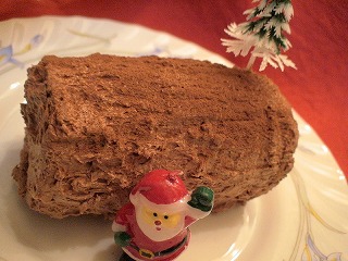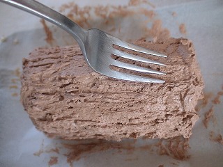 開き直って薪(ブッシュ)のように、フォークの背で木のように仕上げてブッシュ・ド・ノエル風にしました(^_^;) 「ノエル風」って強引か?!