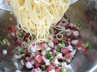 ヤミー流!【タコと彩り野菜の冷製パスタ】の作り方は、続きに書きました。
