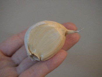 6.5のフライパン(バターが少し残っている状態)に、ニンニク、2の鶏肉を皮の面から入れて5分ほど焼く。