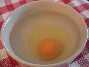 1.耐熱容器に玉子を割り入れて、水(100cc)も加え入れる。