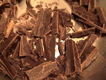 2.板チョコは、5mmほどに刻み、湯せんにかけて溶かしておく