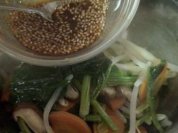 3.ごま油(大さじ1)を回しかけてふたをし、約3分間強火で蒸す。