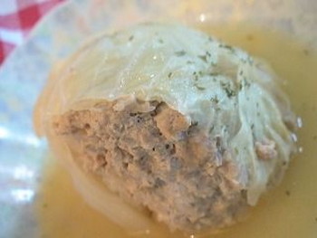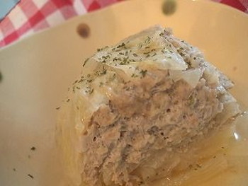 ロールキャベツを作りたいけど、葉を下茹でしてから1つ1つ巻くのが面倒で…という方におすすめの、簡単ロールキャベツを紹介していました。