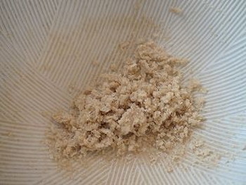 3.すり鉢に白ごまを入れ、油がにじんでくるくらいまでよくする(写真右)。