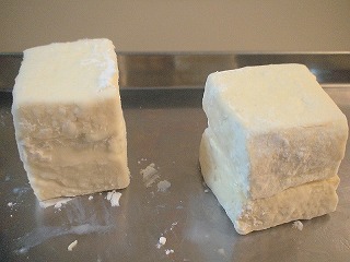 2.1の豆腐をクリームチーズの大きさに合わせて切ります(約4cm角)。