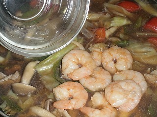 ※火を消してから水溶き片栗粉を全体に回し入れ、再び火をつけて大きく混ぜることでダマになりにくい