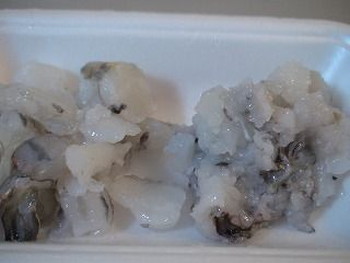 2.えびは殻をむいて背ワタを取り、かたくり粉(少々)をまぶして水で洗う。水けを取り、半分に分けるtarako-syumai1