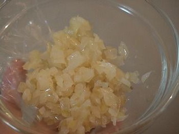 3.しいたけは水けをきって軸を除き、粗みじんに切る。たまねぎも粗みじんに切る。tarako-syumai2