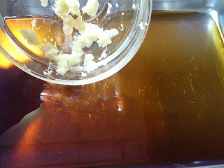 ※しょうがは、もろもろと汚く、焦げる原因にもなるので、ゆっくりと力を入れずに丁寧にすりおろすことで繊維が出ません