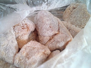 ポリ袋に入れ、かたくり粉(大4)を加えて、全体にたっぷりまぶします。