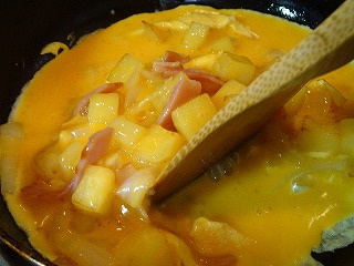 その中で、定番のジャガイモ、ベーコン、タマネギといった具沢山のオムレツ【じゃがいもとベーコンのフリッタータ】が、気になったので作ってみました。「フリッタータ」は、イタリア語で「卵焼き」という意味なんだそうです。