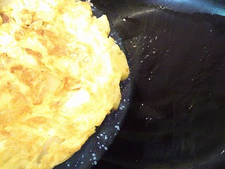 5.4のフライパンに3の溶き卵を回し流し入れます。