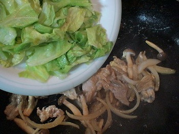 1.フライパンに油を熱し、キャベツ、塩を入れてさっと炒めていったん取り出しておく。