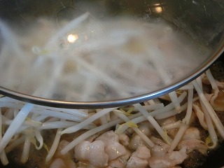 ※蒸らすことで、もやしがシャキシャキになり、豚肉の脂が全体に行き渡る。