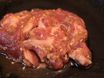 3.フッ素樹脂加工のフライパンを温め、中火で1の肉をタレごと炒める。