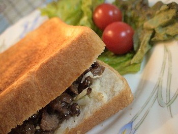 6.トーストの角から切り込みを入れて、大きく開き「袋状」にする。そこに5のキャベツ、4の牛肉を入れて完成!