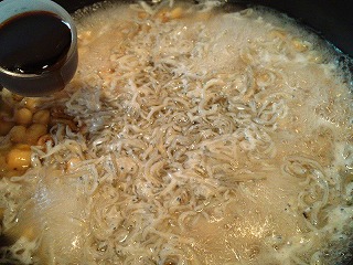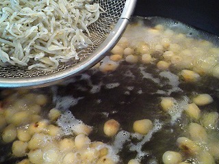(放送:ちりめんじゃこを3分茹でてから、加えるとのことです)