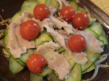 <材料>  4人分 (写真:もやし100g、キュウリ1本)