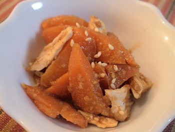 主役なので、ニンジンは千切りにせず、少し大きめに切って存在をアピール、ゴマとよく絡んで美味しかったです。あとひと品という副菜に助かりました★★★