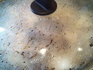 2.蓋をして中火で4~5分ほど蒸し、蓋に水滴がつくくらいまで加熱します。