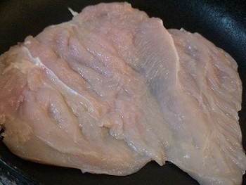 1.鶏むね肉は皮をとり、切り込みを入れ開き、半分ぐらいの厚さまで広げる。