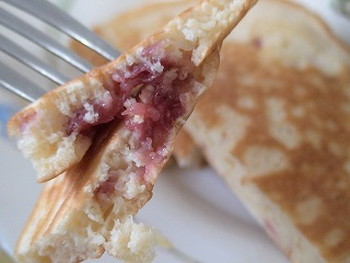 SHIORIさんのブルーベリーを入れたパンケーキのレシピ。私は、苺ジャムでも作ってみましたが、ヨーグルトでモッチモチの仕上がりに!!美味しかったです★★★