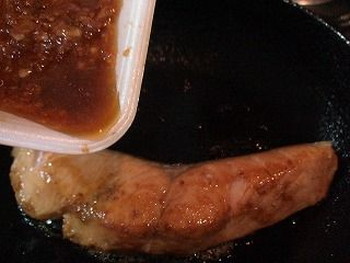 3.味が染み込んだら軽くたれをふき取ってから、フライパンにオリーブ油(分量外大さじ2)をひき、中火で両面焼き色が付くまで焼き、 フタをして4分ほど蒸し焼きにする。
