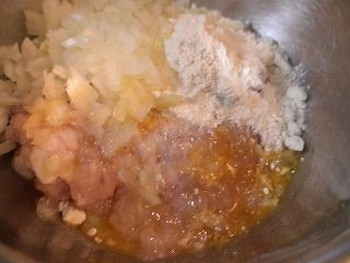 ●フードプロセッサーが無いため、包丁で鶏肉をミンチにして、手で混ぜ合わせました。仕上げに影響はありませんでした。
