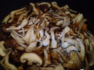 3.鍋に調味液、2のキノコを入れ煮ます。