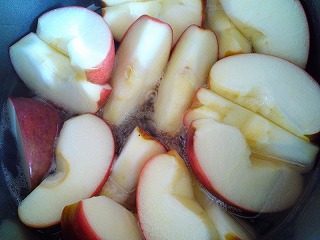 1.リンゴは芯を抜いて8等分に切りお鍋に入れます。