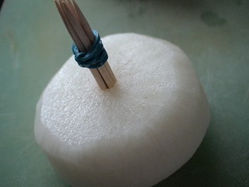 『こなから』さんでは、“ひょうたん型”です。私は爪楊枝をまとめて型抜きしました