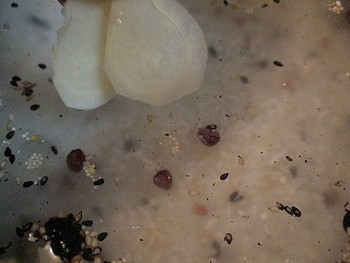 2.雑穀ミックス、水を入れ軽く混ぜ、塩、スライスしたショウガ、 油を加えて通常通り炊く。