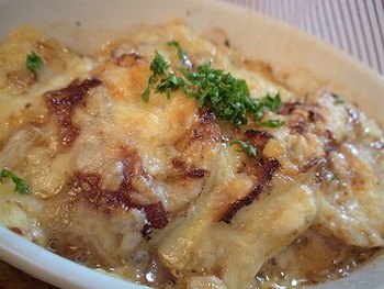 1.フライパンにサラダ油(適量・分量外)をひき、食べやすい大きさに切ったベーコンとタマネギを炒め、 火が通ったら一旦取り出す。