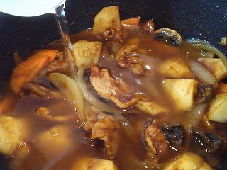 3.水を加えてとろみがついたら【ポークシチュー】の出来上がり