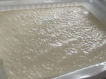 んんんーーーっ 絹豆腐よりしっかりした食感。クリーミーだけど、2/3の高さほどになるとのことなので、水抜きが足りないかな・・・