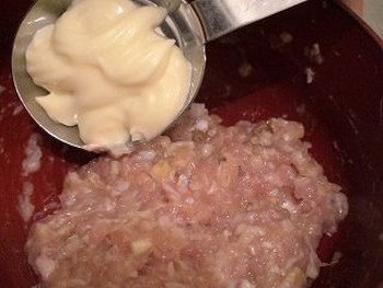 ※調整しやすいマヨネーズをつなぎとして入れる上に、ふっくら、しっとりなる。