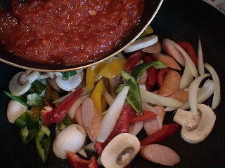 ●写真右:私はソーセージを使用。また、ピーマンを追加しました。
