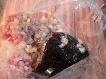 1.ビニール袋にミンチ肉、ネギ、ショウガ汁、塩・コショウ、コーヒーゼリーを入れて混ぜる。