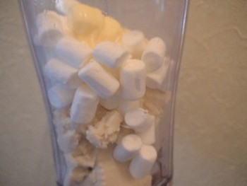 1.豆腐、マヨネーズ、マシュマロをミキサーに入れ、ペースト状になるまで混ぜる。
